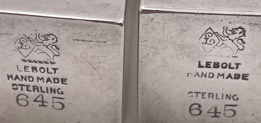 Apart from the Kalo Shop, the other large and long-lived Chicago silversmith was Lebolt & Co. J. Myer Lebolt added a handwrought silversmithing department to his family's Chicago jewelry store in 1912. The Dallas Museum of Art, which holds several Lebolt pieces in its permanent collection, states for one of them that it “ranks among the finest examples of American silver in the Arts & Crafts aesthetic… The geometrically structured bodies reflect Lebolt’s attempt to attract attention in the small but highly competitive market for progressive silver in Chicago.”