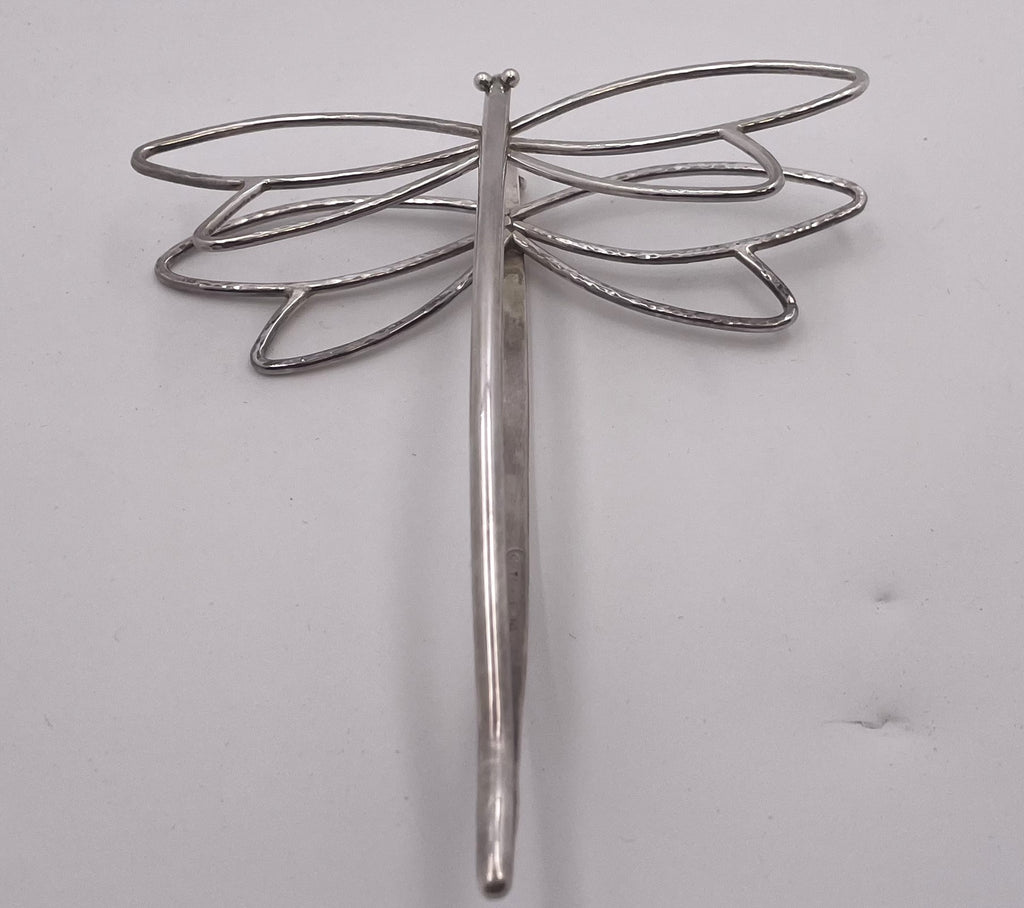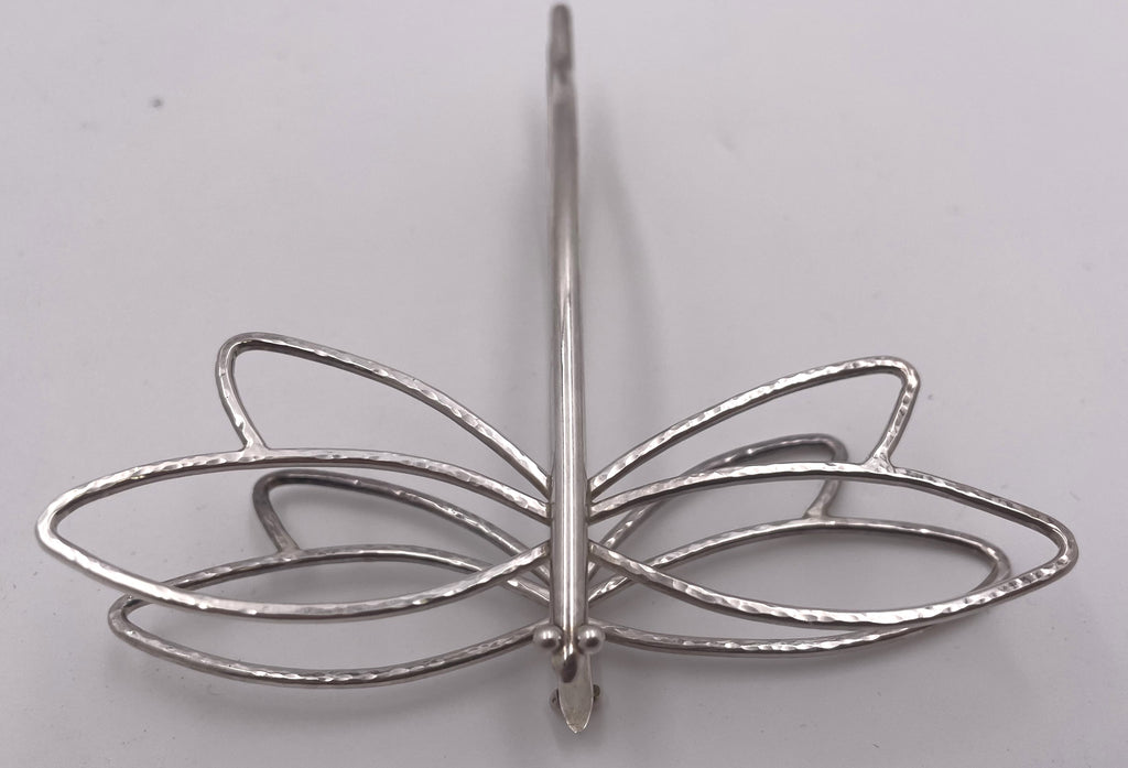 Janet Torelli sterling silver handmade and hand-hammered sandwich serving tongs shaped as a butterfly. It measures 5 1/8'' in length by 4 1/4'' in width by 7/8'' in height, weighs 1.3 troy ounces, and bears hallmarks as shown.