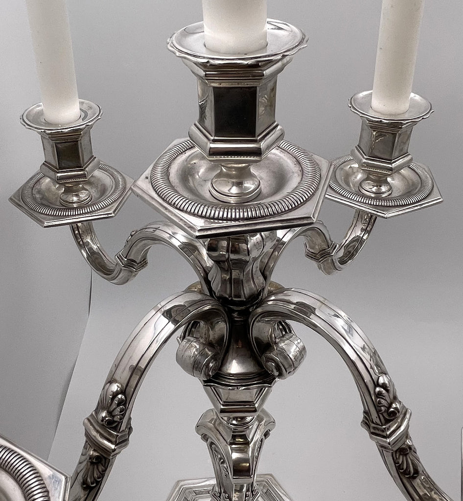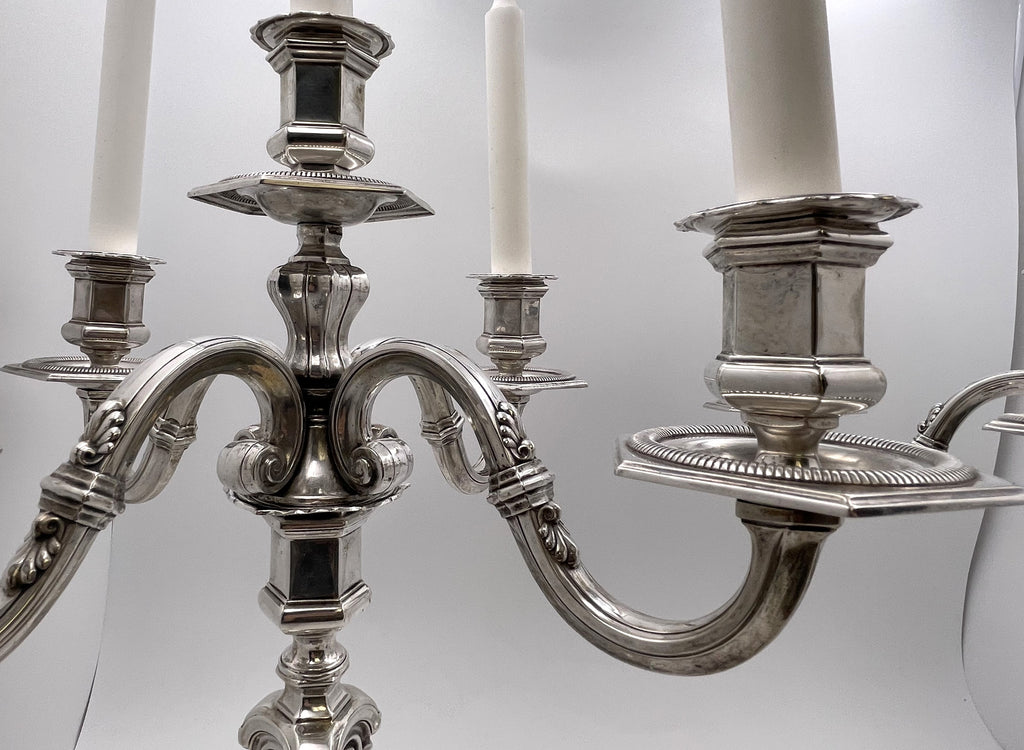 Pair of European Continental Silver 5-Light Candelabra from Late 19th or Early 20th Century