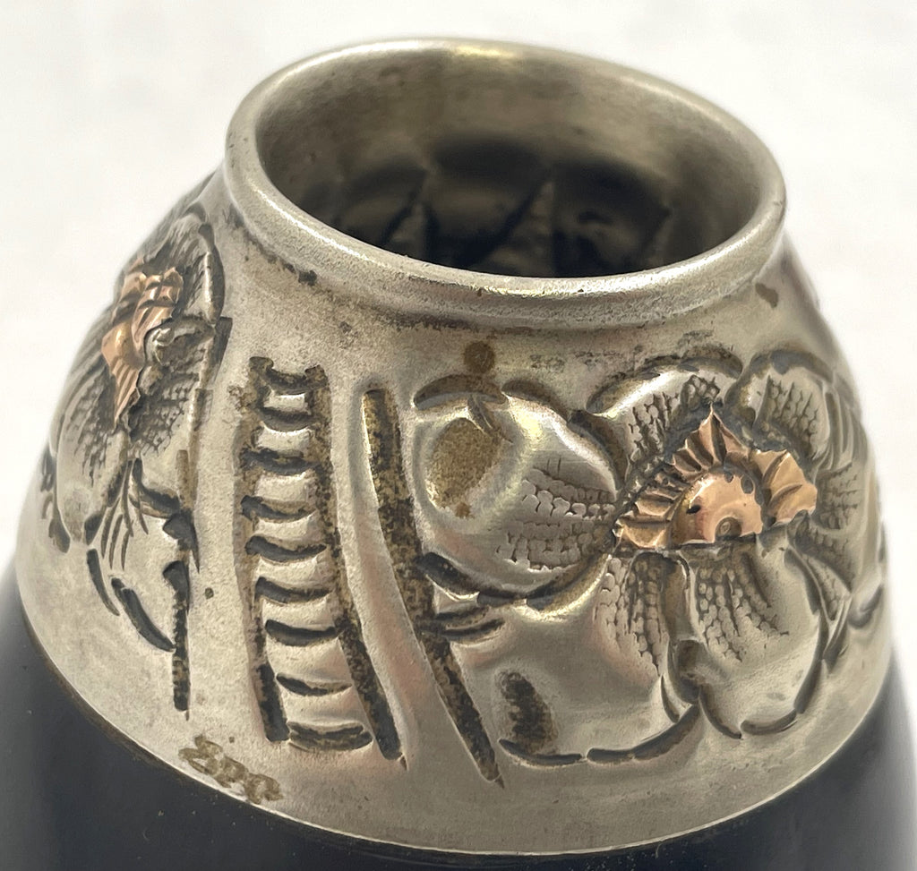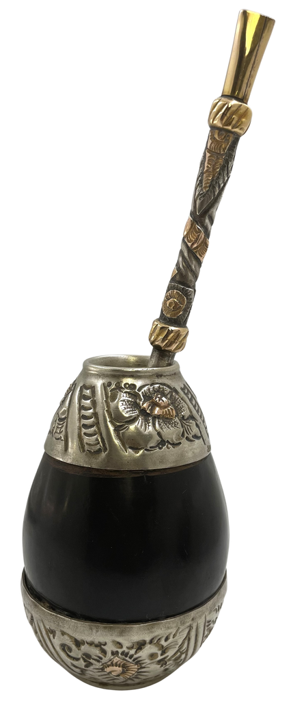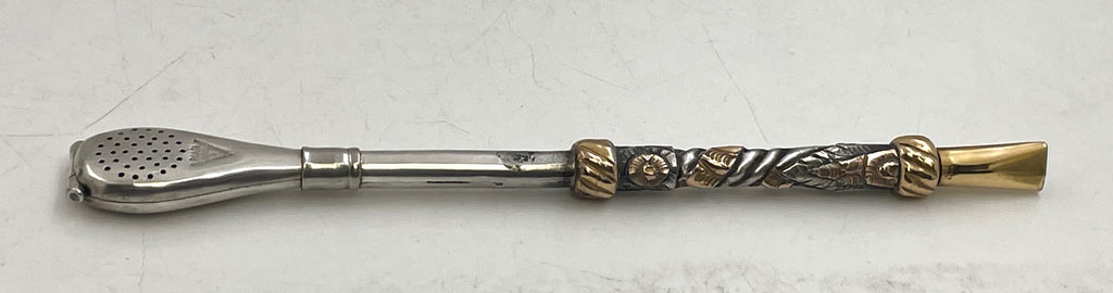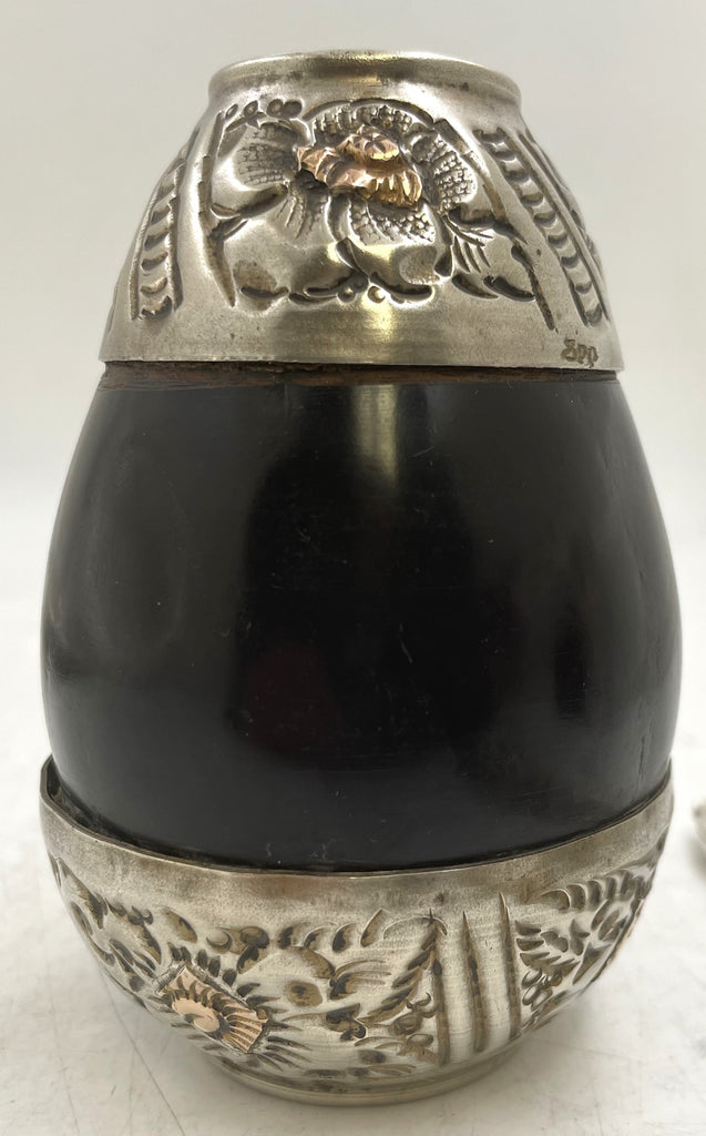 Argentinian Silver and 18K Gold Inlaid Mate Cup with Straw