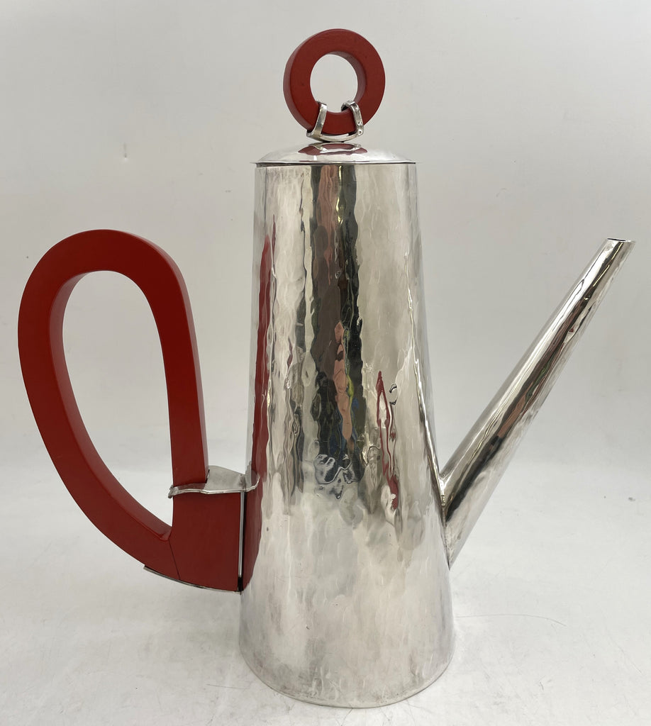 a coffeepot, measuring 12 3/4'' in height by 11 3/4'' from handle to spout