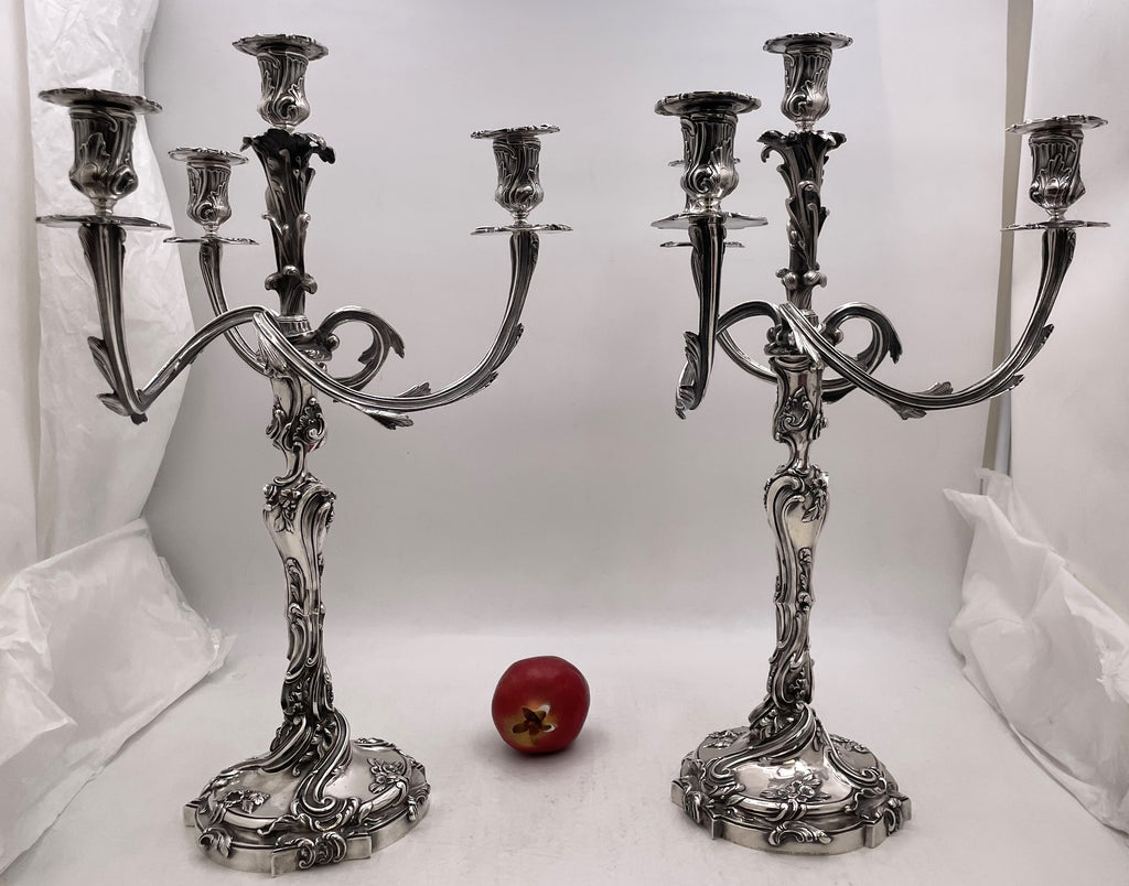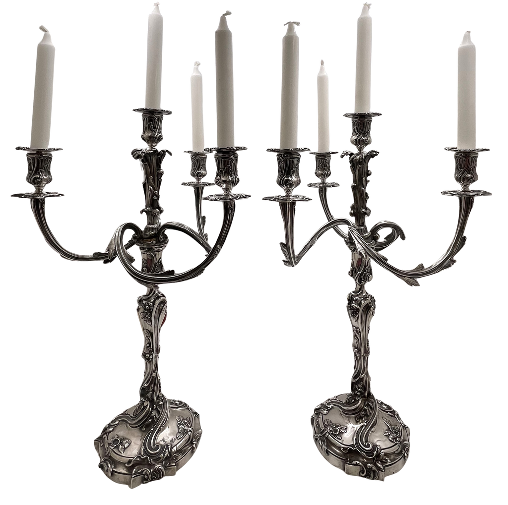 Pair of Fouquet-Gueudet French Sterling Silver 4-Light Candelabra Circa 1865