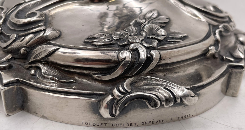 Fouquet Gueudet had a gallery at 18 Chaussee d'Antin in Paris, at a strategic location close to the Garnier Opera and the Galeries Lafayette. In fact, photographer Ferdinand Cartier was active in the same building. The Fouquet family had a longstanding heritage as prestigious jewelry makers. In fact, they showed their work at the prestigious World's Fair in 1873 and subsequently won a bronze medal. Their jewelry is present in many museum collections, ranging from the Musee des Arts Decoratifs in Paris and the Metropolitan Museum of Art in New York. Some of their silver pieces, which are rare to come onto the market, are also present in museum collections, such as that of the Museum of Art and History in Geneva. They were active in the 19th and early 20th centuries.