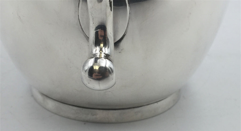 J. E. Caldwell & Co. sterling silver bar pitcher, measuring 7.7 inches in height and 8.3 inches from handle to spout, and weighing 22.5 troy ounces, and bearings hallmarks as shown.