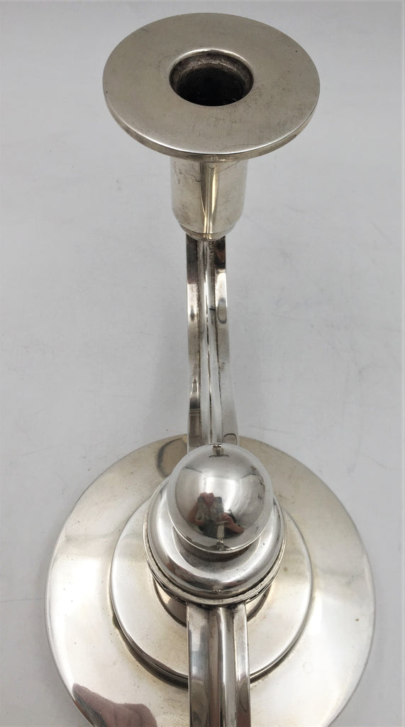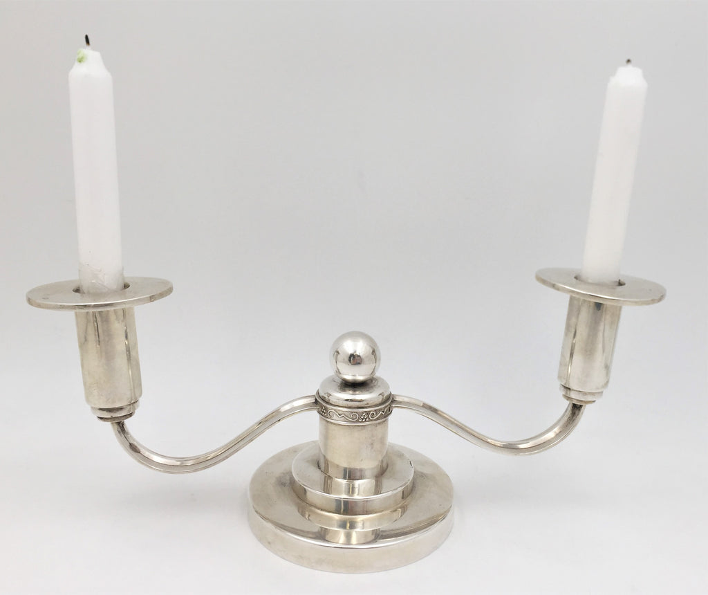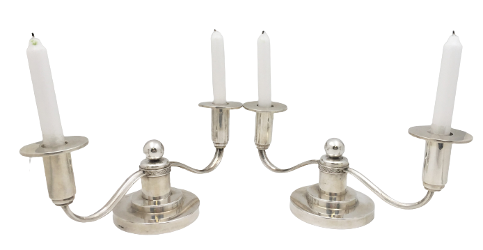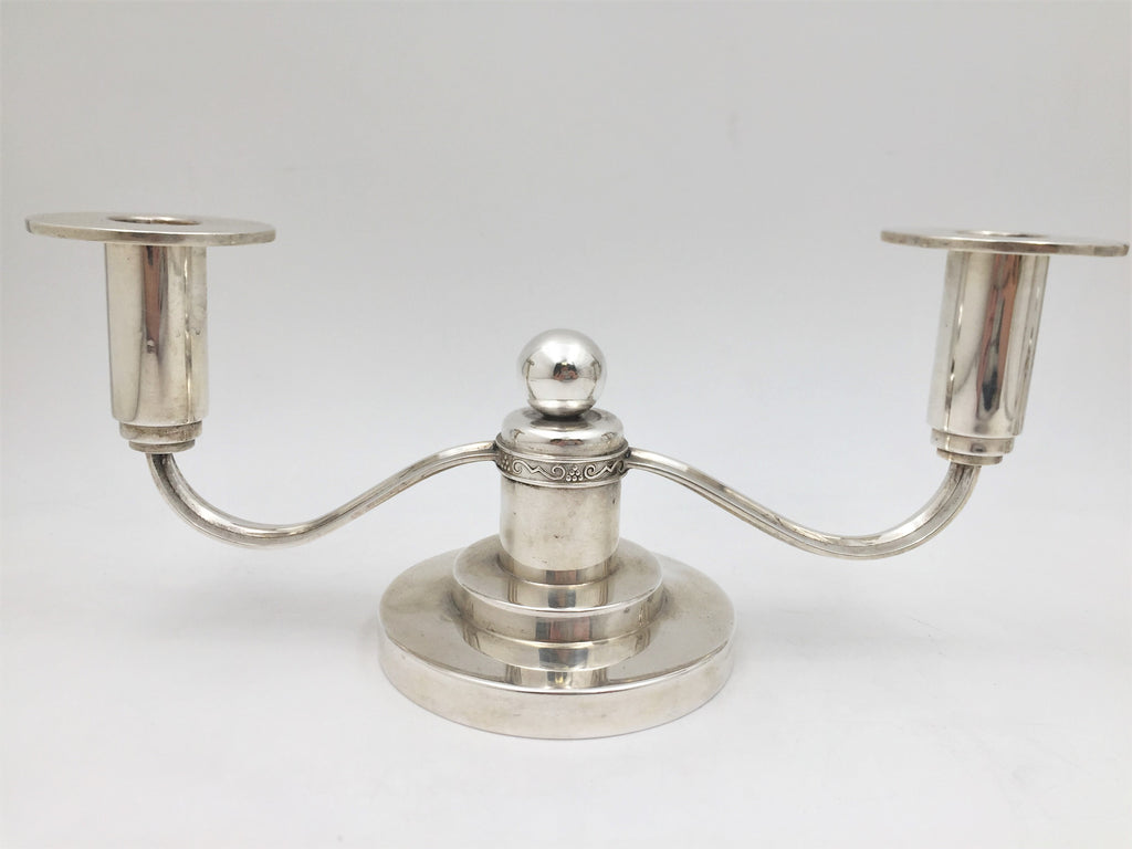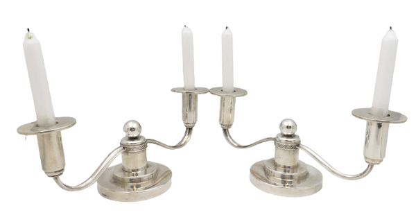 Thune Norwegian Silver Pair of 2-Light Candelabra in Mid-Century Modern Jensen Style