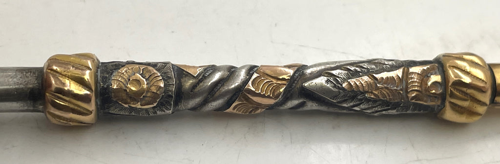 Argentinian Silver and 18K Gold Inlaid Mate Cup with Straw
