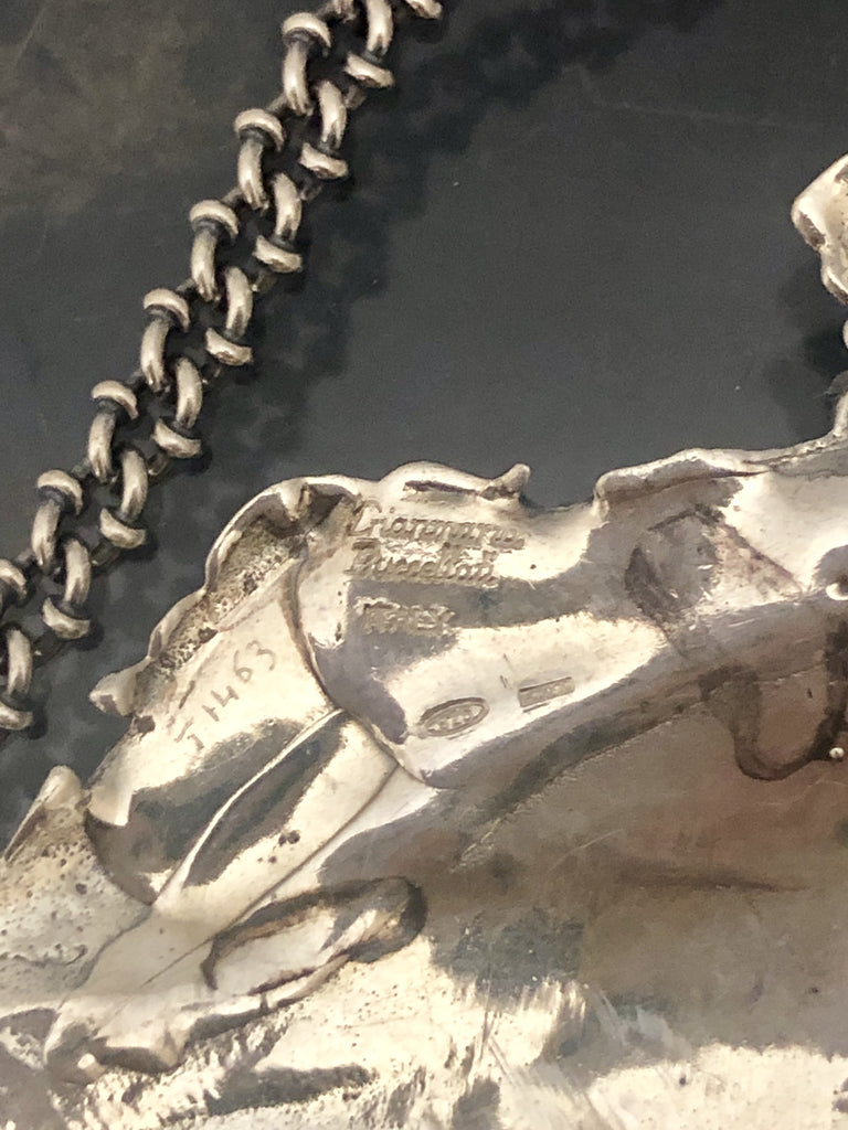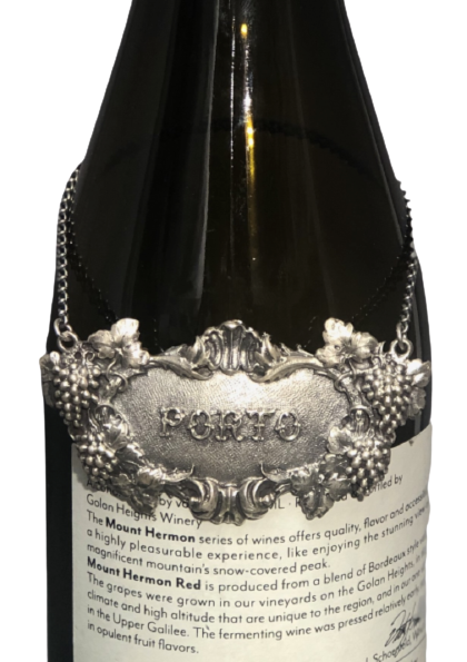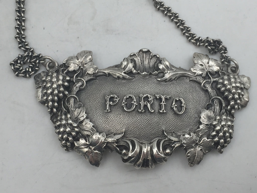 Rare Buccellati sterling silver claret bar jug label. PORTO embossed on the front in the center.