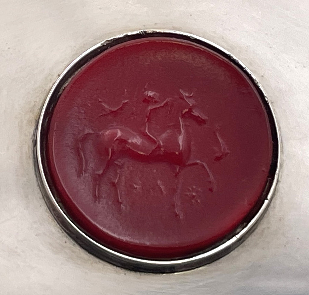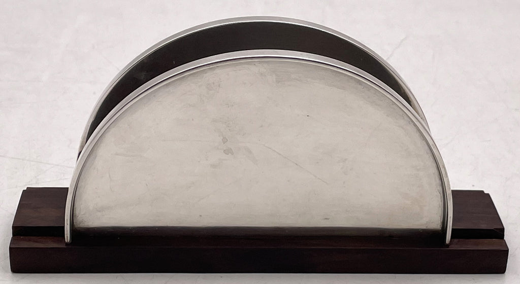 De Vecchi Sterling Silver & Wood Letter / Napkin Holder with Inlaid Seal in Mid-Century Modern Style