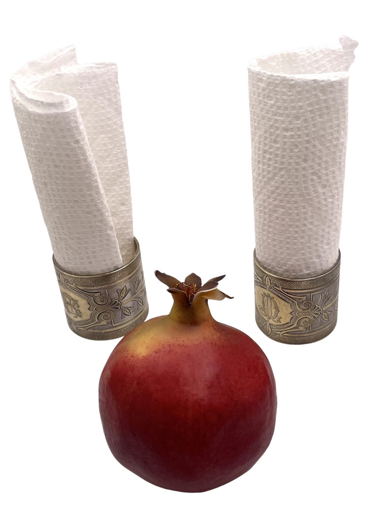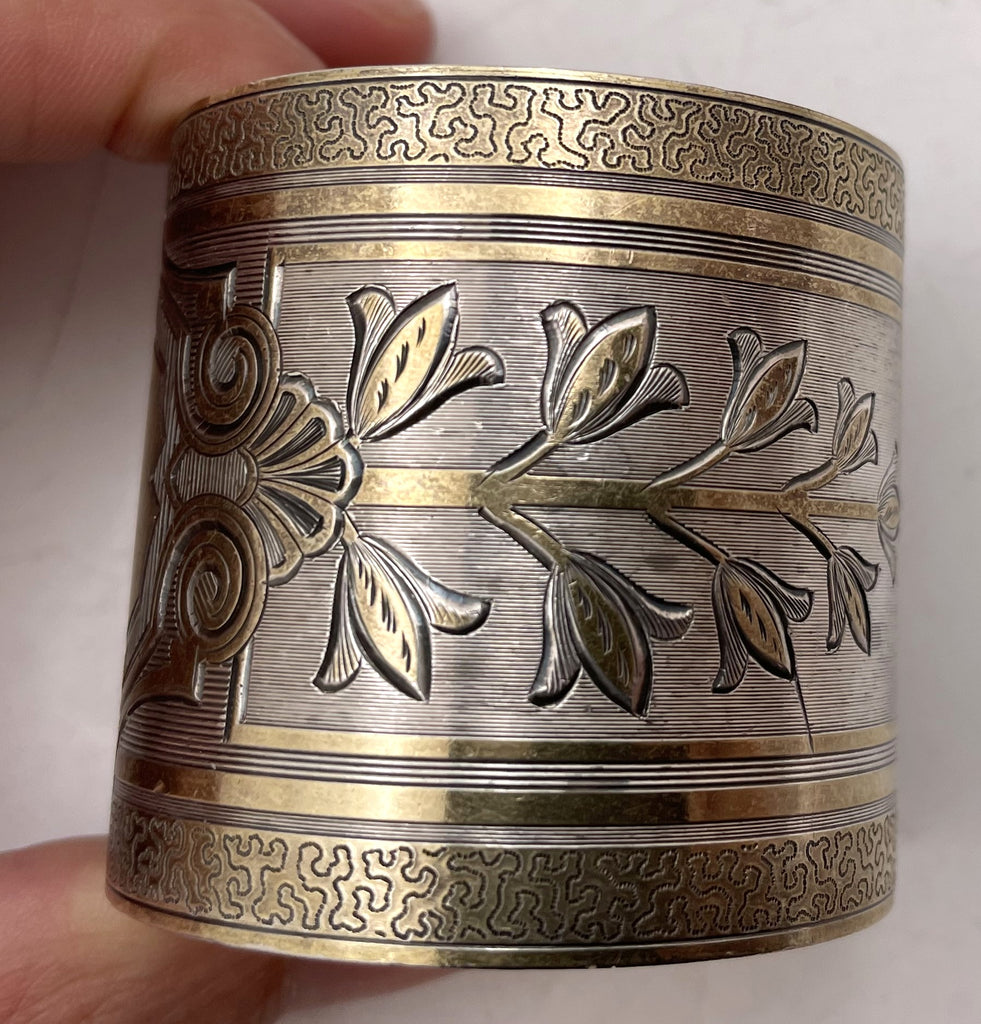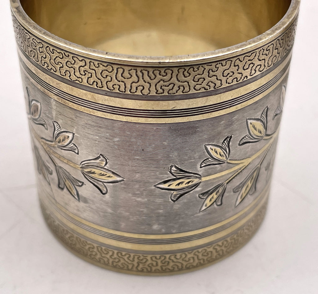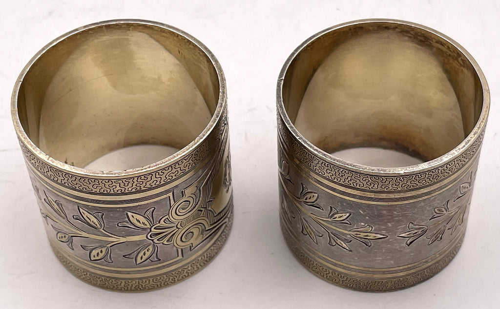 Pair of Gilt Silver Napkin Rings with Finely Engraved Motifs from Late 19th/ Early 20th Century