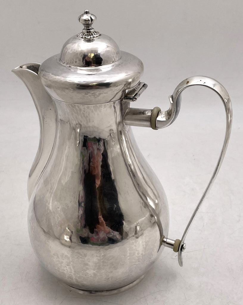 Buccellati, sterling silver, beautifully hand-hammered 4-piece tea and coffee set, made in Italy in the 20th century, adorned with finials, consisting of:
