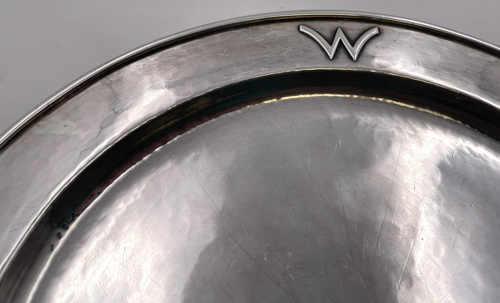 While the Kalo Shop was the best-known Chicago silversmith in the first part of the 20th century, a handful of others rivaled its output in quality. Falick Novick amid a few others created pieces that can be hard to distinguish from those of the Kalo Shop. In the case of Novick, this is because many of the Kalo Shop's large sterling trays were made by Novick. In fact, after he went into business for himself he became known locally as the "tray man" who was commissioned to fashion beautiful silver trays for other companies. After a somewhat rocky start in New York, Novick moved to Chicago in 1907 and set up a shop there two years later. While some other makers' output declined over the years, Novick's remained consistently high. His small operation prospered for nearly half a century until his death in 1957. He sold his work in his store and through other merchants such as Macy's in New York, but turned down an invitation from the prestigious Danish maker Georg Jensen to market Novick's silver, concerned that a significantly increased volume might mean he wouldn't be able to keep his existing customers happy. He was renowned for his “unusual monograms in diamond or almond-shaped configurations,” states historian Sharon Darling who writes about him and illustrates his work in “Chicago Metalsmiths” (1977). The prominent Art Institute of Chicago owns several of his pieces.