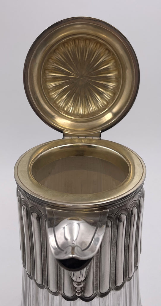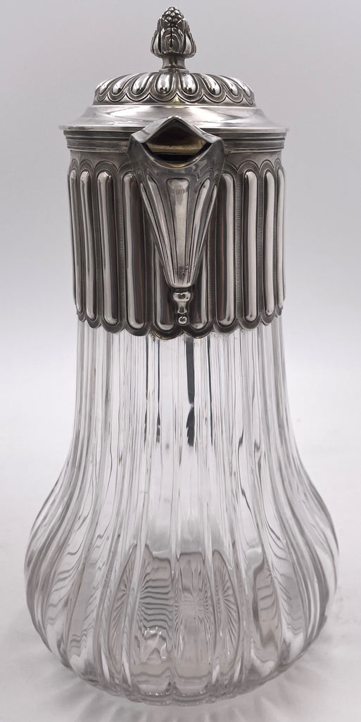 Pair of French Sterling Silver and Cut Glass Carafes/ Pitchers from Late 19th Century